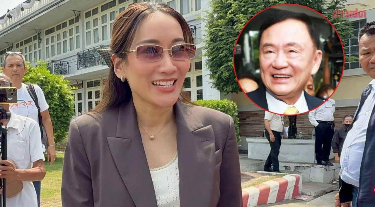 他信已被拘留5个月零14天。萍通塔抵达监狱正门,一群红衫军支持者聚集在那里迎接她。30分钟的探访结束后,她告诉支持者,她的父亲身体状况良好。